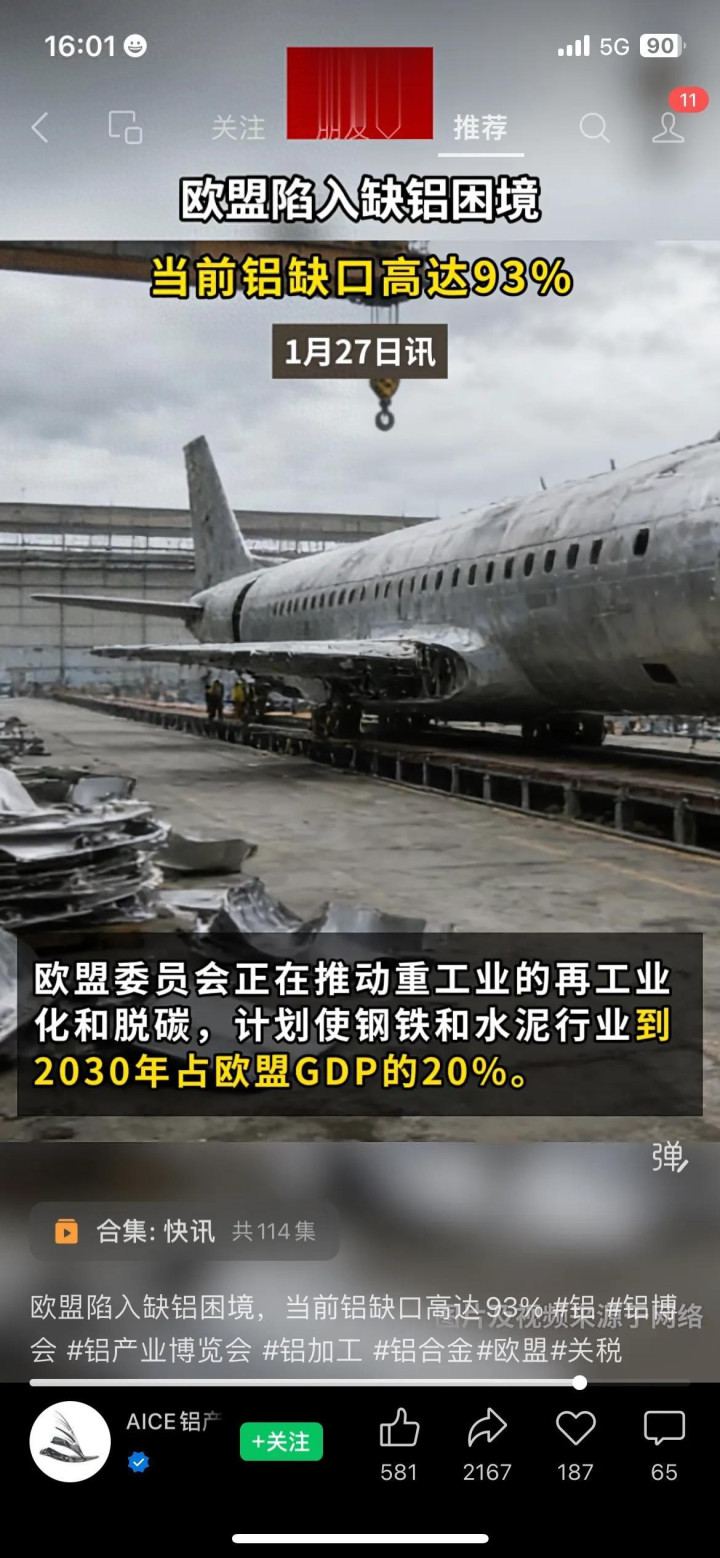 我做外贸的朋友老周,最近靠欧盟缺铝赚了半年工资!他接了一笔欧洲的铝制品订单,价格比去年涨了40%,对方还催着发货,说晚了就没货生产了。老周跟我说:“欧盟现在缺铝缺疯了,飞机、汽车、家电厂都在抢货,哪怕涨价也愿意要。”这背后,是欧盟高达93%的铝缺口,每年缺1255万吨,本地仅能生产95万吨,几乎全靠进口撑着。